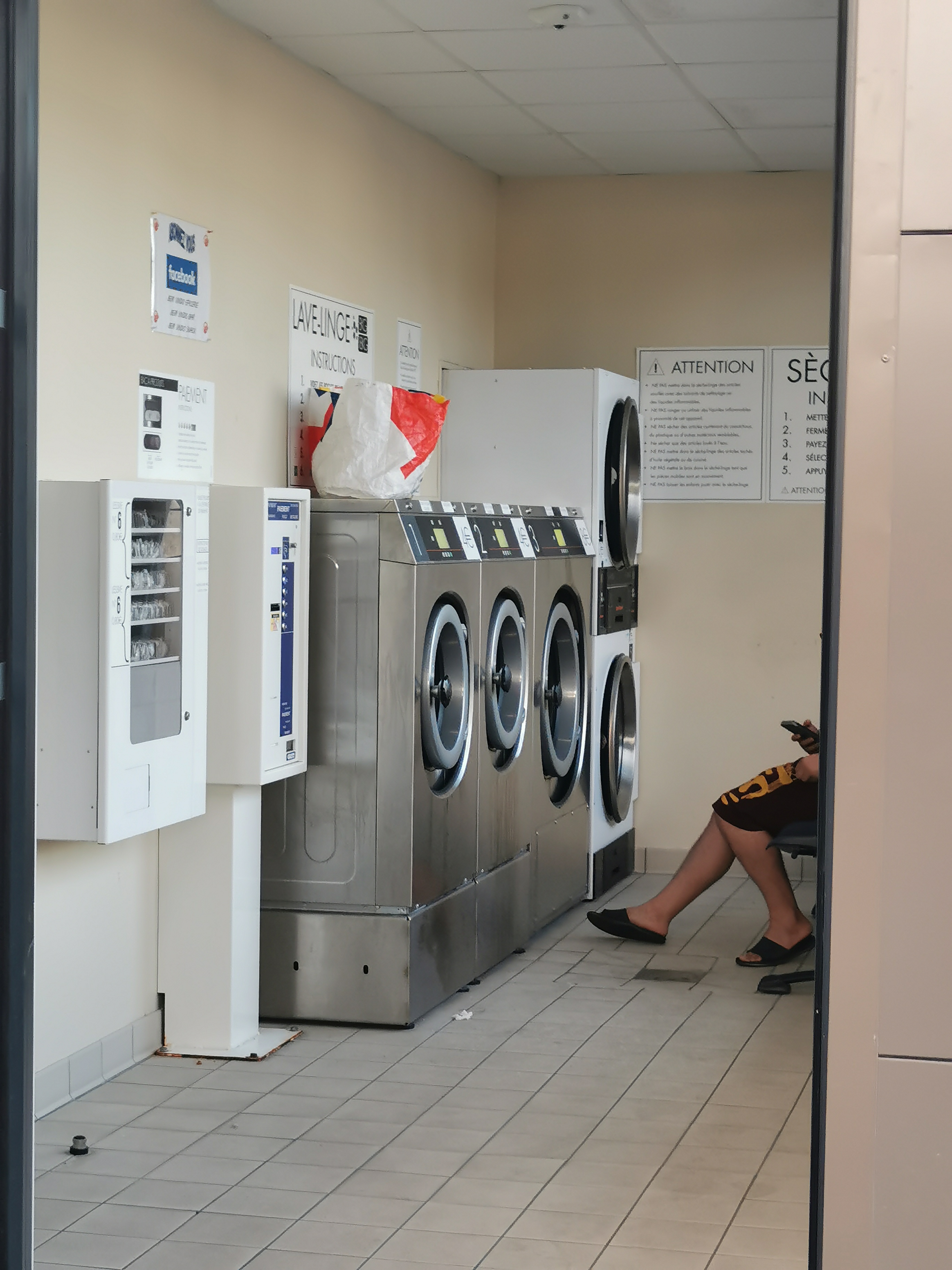 Beau parking, magasin bien achalandé, salle de bain, WC et lave-linge avec sèche-linge...